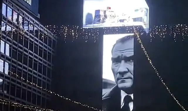 Belediye ekipleri, Kızılay Meydanı’ndaki LED ekranlara Atatürk portresi yansıttı.Başkentte Su Krizi Sürüyor