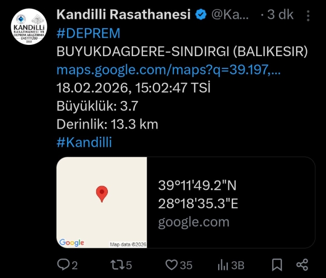 Deprem, 18 Şubat 2026 tarihinde saat 15.02.47 TSİ’de kaydedildi. Yer sarsıntısının yerin 13.3 kilometre derinliğinde gerçekleştiği bildirildi. İlk belirlemelere göre deprem sonrası herhangi bir can ya da mal kaybı yaşanmadı.