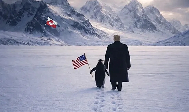 Beyaz Saray tarafından paylaşılan görselde, Donald Trump’ın buzlarla kaplı bir coğrafyada, bir penguenle birlikte yürüdüğü görülüyor. Yapay zekâ tarafından oluşturulan görselde, dağların üzerinde Grönland bayrağı yer alırken, penguenin ABD bayrağı taşıması dikkat çekti.Paylaşımın üst mesajında ise “Pengueni kucakla” ifadesi kullanıldı. Görsel, internette yaygınlaşan ve mizah unsurları barındıran “Nihilist Penguen” akımına gönderme olarak yorumlandı.Trump’ın Grönland Israrı Yeniden Gündemde