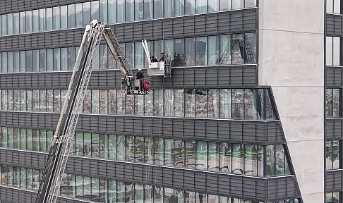 Bursa'nın Nilüfer ilçesinde özel bir hastanenin dış cephe camlarını temizleyen 2 işçi, asansör sisteminin arızalanması sonucu yaklaşık 52 metre yükseklikte mahsur kaldı.