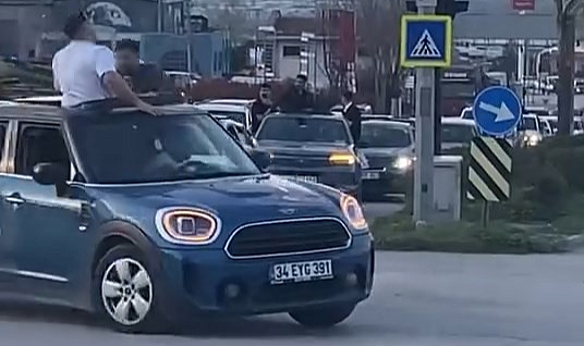Yaklaşık 7 aracın camlarından ve sunrooflarından çıkan kişiler, trafik kurallarını hiçe sayarak sağa sola yöneldi. Bazı sürücüler öne geçmek için ani manevralar yaparken, diğer araçlar bilinçsiz bir şekilde direksiyon kırdı. Düğün konvoyu tehlikesi, vatandaşların tedirginliğine neden oldu.Gelin Arabasının Arkasındaki Araçlar Dikkat Çekti