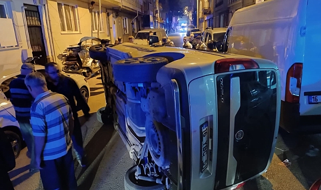 Bursa'da Kontrolden Çıkan Otomobil Yan Döndü: 1 Yaralı Kaza, Selamet Mahallesi 1’inci Ordulu Sokak’ta saat 20.30 sıralarında yaşandı. M.A. yönetimindeki 16 YBC 51 plakalı hafif ticari araç, sürücünün kontrolünü kaybetmesi sonucu park halindeki bir otomobile çarptı. Çarpmanın etkisiyle araç yan dönerken, içerde bulunan yolculardan biri yaralandı.Olay sonrası araç içinde bulunan sürücü ve beraberindeki dört kişi çevredeki vatandaşların yardımıyla çıkarıldı. İhbar üzerine bölgeye sağlık, polis ve itfaiye ekipleri sevk edildi. Sağlık ekipleri yaralıya olay yerinde ayakta tedavi uyguladı.Kazayla ilgili inceleme başlatıldı.