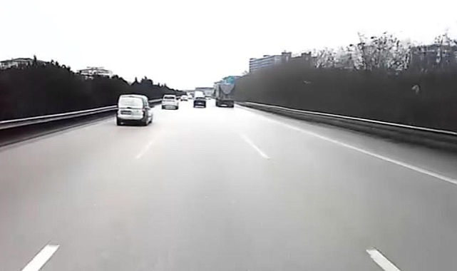 Herkesin yüreğini ağzına getiren anlar, arkadan gelen bir kamyonun araç içi kamerası tarafından kaydedildi. Görüntülerde kamyonetin savrularak döndüğü ve yolun ortasında durduğu anlar yer aldı.Kamyon Sürücüsünün Refleksi Olası Faciayı Önledi