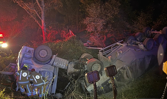 Bursa’nın İznik ilçesinde çimento yüklü bir tırın şarampole yuvarlanması sonucu 2 kişi yaralandı.