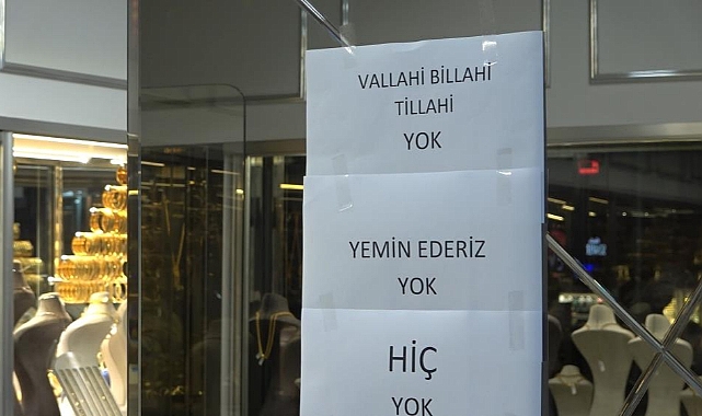 Bursa'da altın fiyatlarındaki sert düşüş, vatandaşları kuyumcu dükkanlarına yöneltti. Sabahın erken saatlerinde başlayan yoğun talep, bazı kuyumcularda altınların kısa sürede tükenmesine yol açtı. Yoğunluk karşısında esnaf, dükkân camına "Vallahi billahi yok, yemin ederim yok" yazısı astı. Bu durum sosyal medyada ve vatandaşlar arasında gülümseten anlar yarattı.
