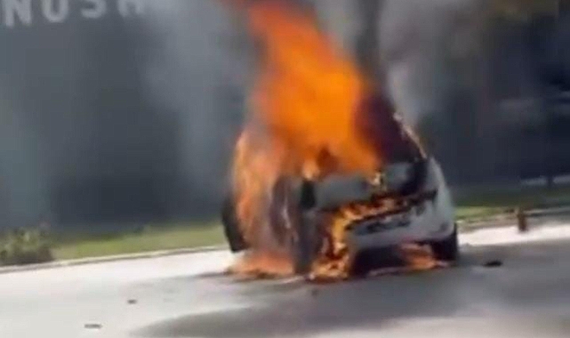 Bursa’nın Nilüfer ilçesi Organize Sanayi Bölgesi’nde park halindeki bir otomobil alev alarak yangın çıkardı. Araç dakikalar içinde alev topuna dönerken, olay yerine sevk edilen itfaiye ekipleri yangını kontrol altına aldı.