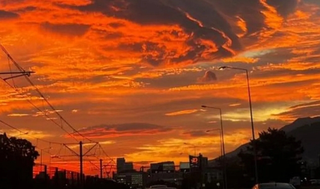 Bursa’da sabah saatlerinde gökyüzünde oluşan mercek bulutları, gün doğumunun turuncu ve kırmızı tonlarıyla birleşerek kartpostallık manzaralar oluşturdu.