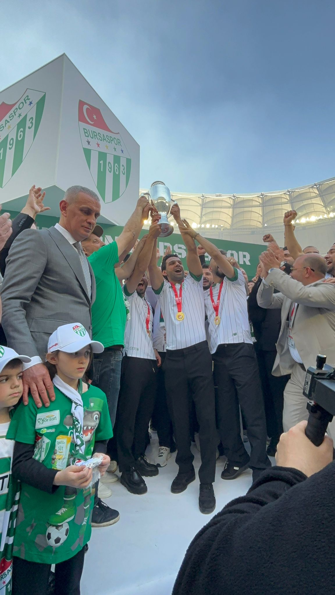 Asıl sahne ise kupa töreniydi. Atatürk Spor Kompleksi Matlı Stadyumu’nda tribünler tıklım tıklım dolarken, İbrahim Hacıosmanoğlu’nun da katıldığı törende futbolcular kupayı coşkuyla havaya kaldırdı.