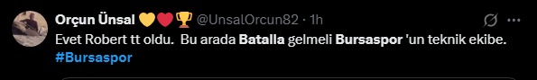 #BatallaGeriDön ve #ÖmerErdoğanBursaspor’da etiketleri kısa sürede sosyal medyada trend oldu. Taraftarlar, “Gerçek kaptan geri dönüyor” ve “İki efsane bir arada olursa Bursaspor yeniden doğar” yorumlarıyla destek mesajları paylaşıyor.