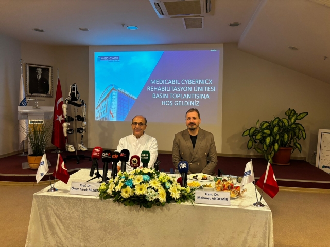 Cyber-Nöro Robotik Yürüme Rehabilitasyon Ünitesi, nörolojik hastalıkların tedavisinde kullanılan yeni nesil robotik yürüme teknolojileriyle dikkat çekiyor. Ünitenin tanıtımı, Prof. Dr. Ömer Faruk Bilgen ve Uzm. Dr. Mehmet Akdemir tarafından düzenlenen basın toplantısıyla gerçekleştirildi.