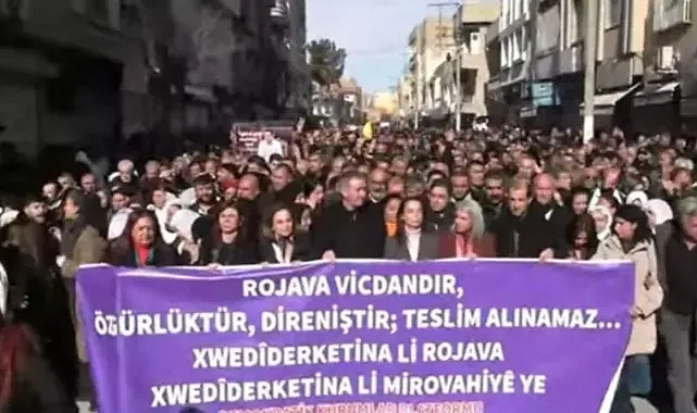 Suriye’de merkezi yönetimin YPG/PKK’ya yönelik operasyonlarının ardından bölgede tansiyon yükselirken, DEM Parti grup toplantısını son dakika kararıyla sınır hattına taşıdı. Toplantı öncesinde parti yöneticileri ve milletvekillerinin katılımıyla yürüyüş düzenlendi.