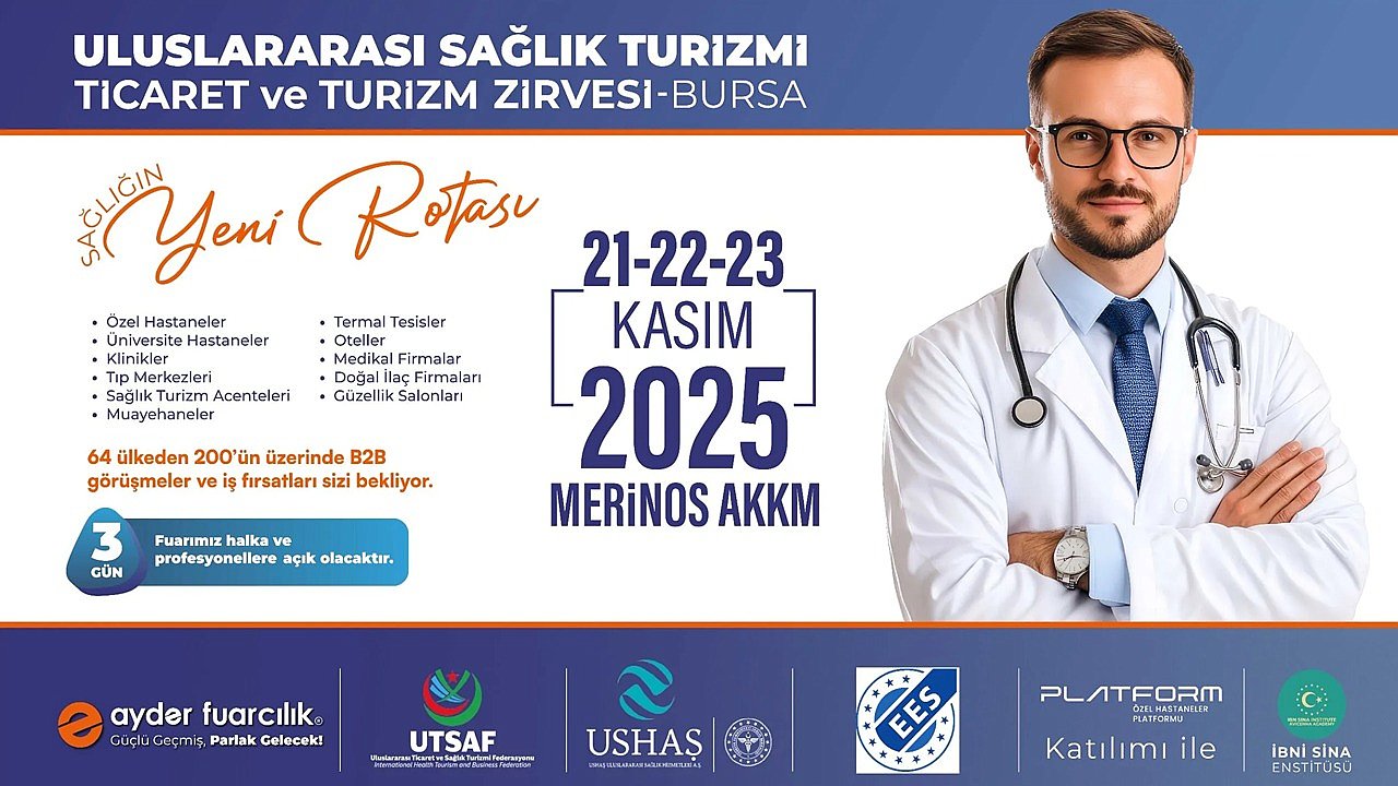 Bursa, gelişmiş sağlık altyapısı, uzman hekim kadrosu ve uluslararası standartlardaki uygun maliyetli hizmetleriyle sağlık turizminde dünyanın dikkatini çeken Türkiye’nin ev sahipliğinde, küresel ölçekte önemli bir zirveye hazırlanıyor. Bursa Valiliği’nin onayıyla, Ayder Grup organizasyonunda ve Uluslararası Ticaret ve Sağlık Turizmi Federasyonu (UTSAF) desteğiyle düzenlenecek Uluslararası Sağlık Turizmi, Ticaret ve Turizm Zirvesi, 21–23 Kasım 2025 tarihleri arasında Bursa Merinos Atatürk Kongre
