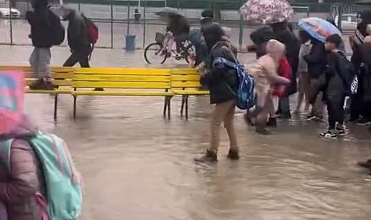 Bahçede biriken sular nedeniyle öğrencilerini almak isteyen veliler, çözümü okul bahçesindeki bankları sıralayarak geçit oluşturmakta buldu. Öğrenciler, banklardan yapılan bu geçici köprü üzerinden okuldan çıkarıldı.Veliler Tepkili: “Burası Neden Görülmüyor?”