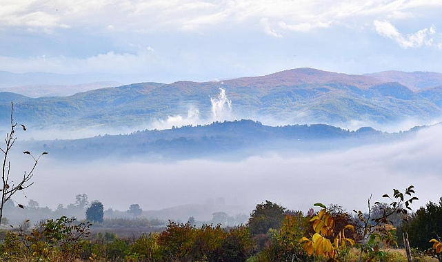 İnegöl'de Sonbahar Güzelliği: Sis ve Renk Cümbüşü Büyüledi