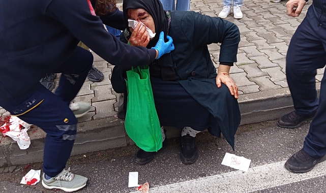 Yaralanan kadın, çevredeki vatandaşların müdahalesiyle ilk yardım aldı ve sağlık ekiplerince hastaneye kaldırıldı.