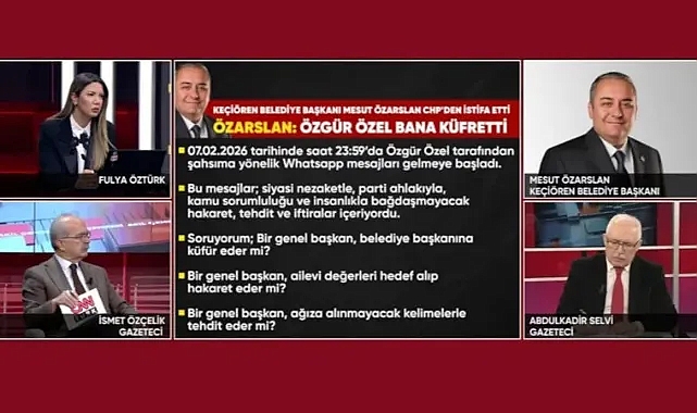 CHP’de yaşanan kriz derinleşerek sürüyor. Keçiören Belediye Başkanı Mesut Özarslan, CHP’den istifa ettiğini açıklamasının ardından CNN TÜRK’te Fulya Öztürk’ün sunduğu canlı yayına katılarak iddiaların detaylarını ve istifa sürecini kamuoyuyla paylaştı. Özarslan, yaşananların siyasi değil insani bir kırılma noktası olduğunu vurguladı.