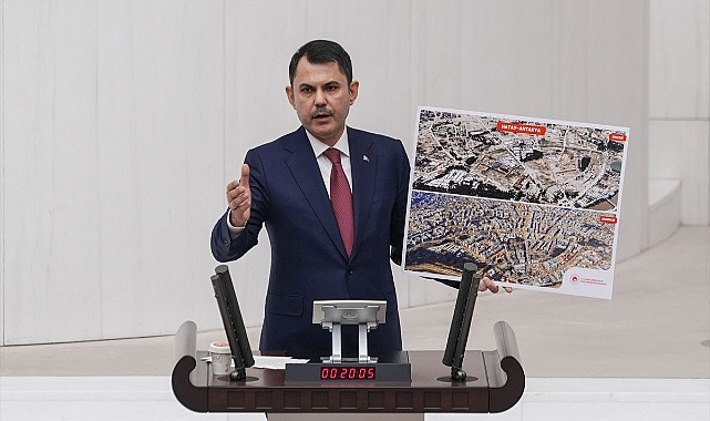 Kurum, deprem bölgesinde başlatılan konut seferberliğinin geldiği noktayı görsellerle milletvekillerine anlattı.