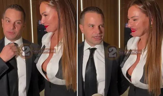 Eşi Yağmur Atacan ile birlikte geceye katılan Altuğ, derin göğüs dekolteli, düğmeleri tamamen açık bırakılmış beyaz gömlek tarzıyla davetin en çok konuşulan isimlerinden biri haline geldi.