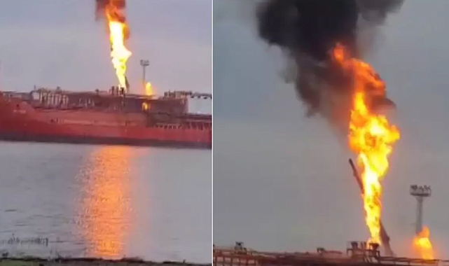 Saldırı sonrası gemide yangın çıktı, 16 kişilik mürettebat patlama riskine karşı güvenli bir şekilde tahliye edildi.
