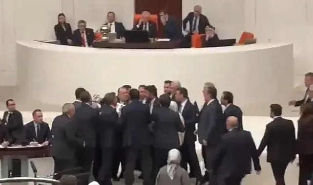 AK Partili milletvekillerinin, CHP’li milletvekillerinin elindeki karton tabutu almak istemesi üzerine TBMM Genel Kurulu’nda yumruklu kavga çıktı. O anlar kameralara yansırken, milletvekilleri arasında arbede yaşandı.Birleşime Ara Verildi